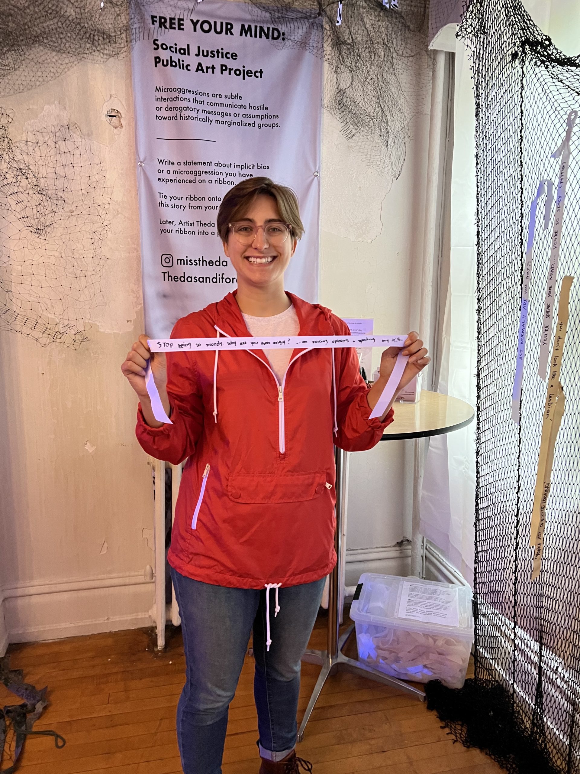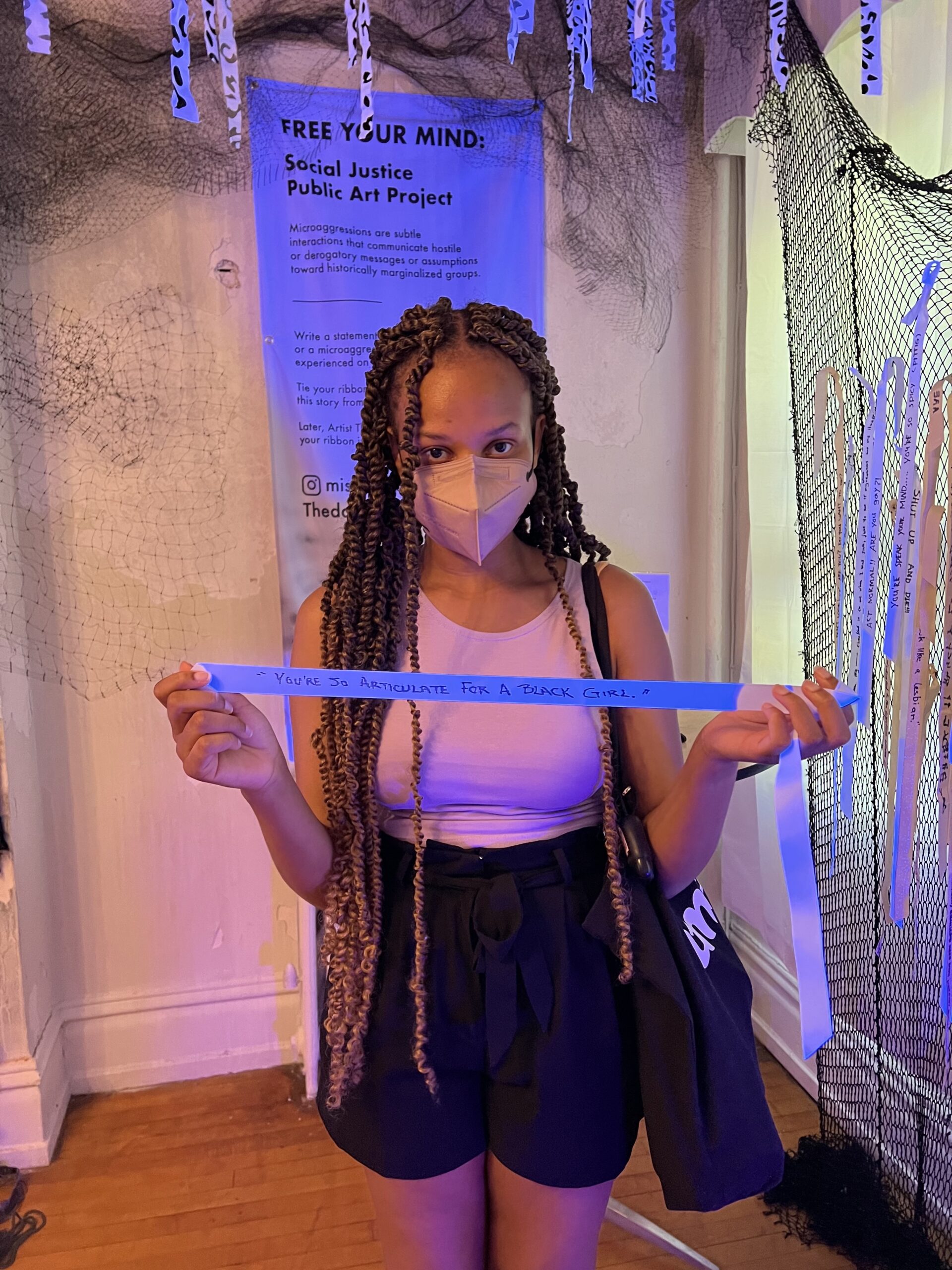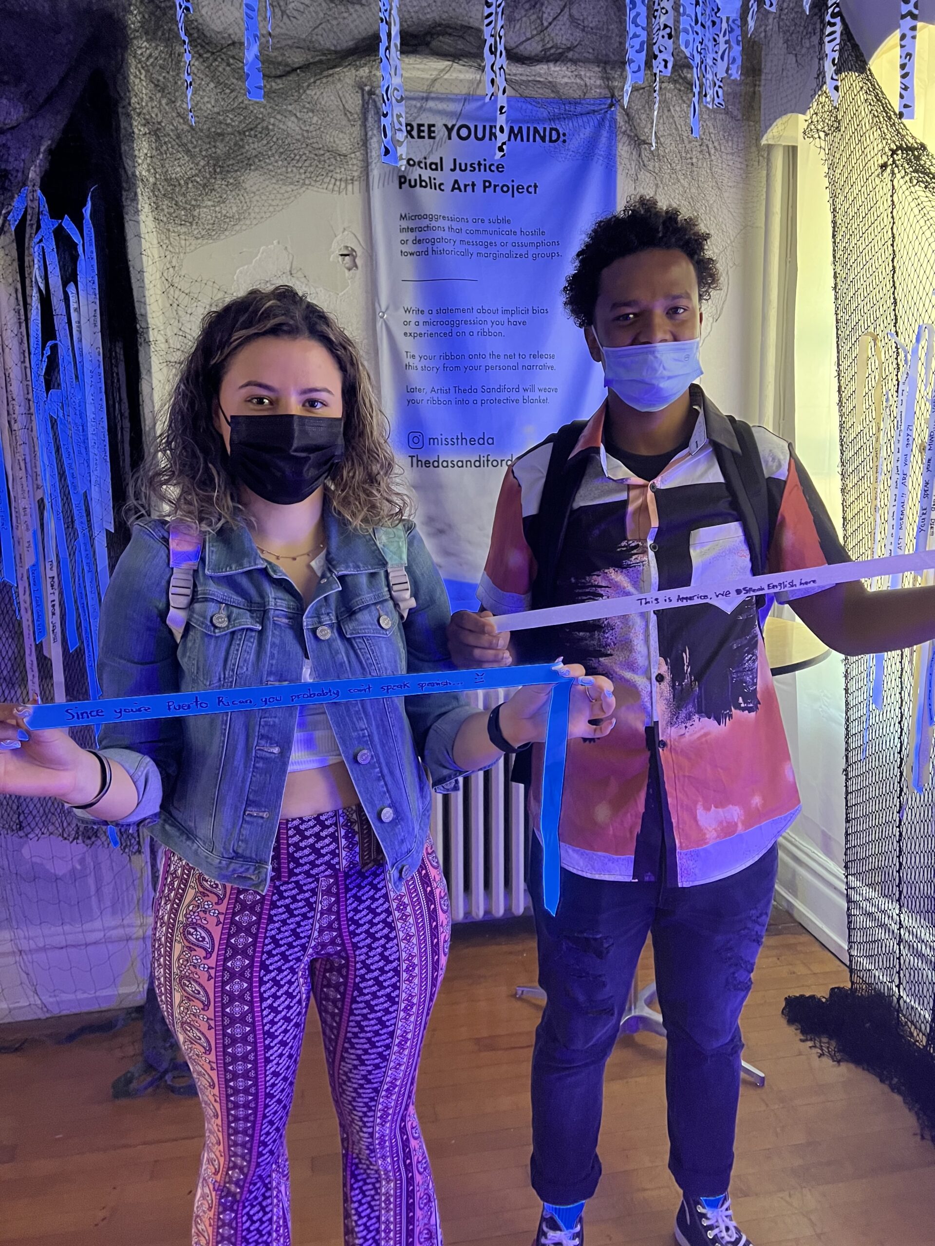 Free Your Mind is a public textile art endeavor led by artist Theda Sandiford, with the objective of gathering, showcasing, embedding, and liberating personal narratives surrounding microaggressions through a multi-sensory installation.
