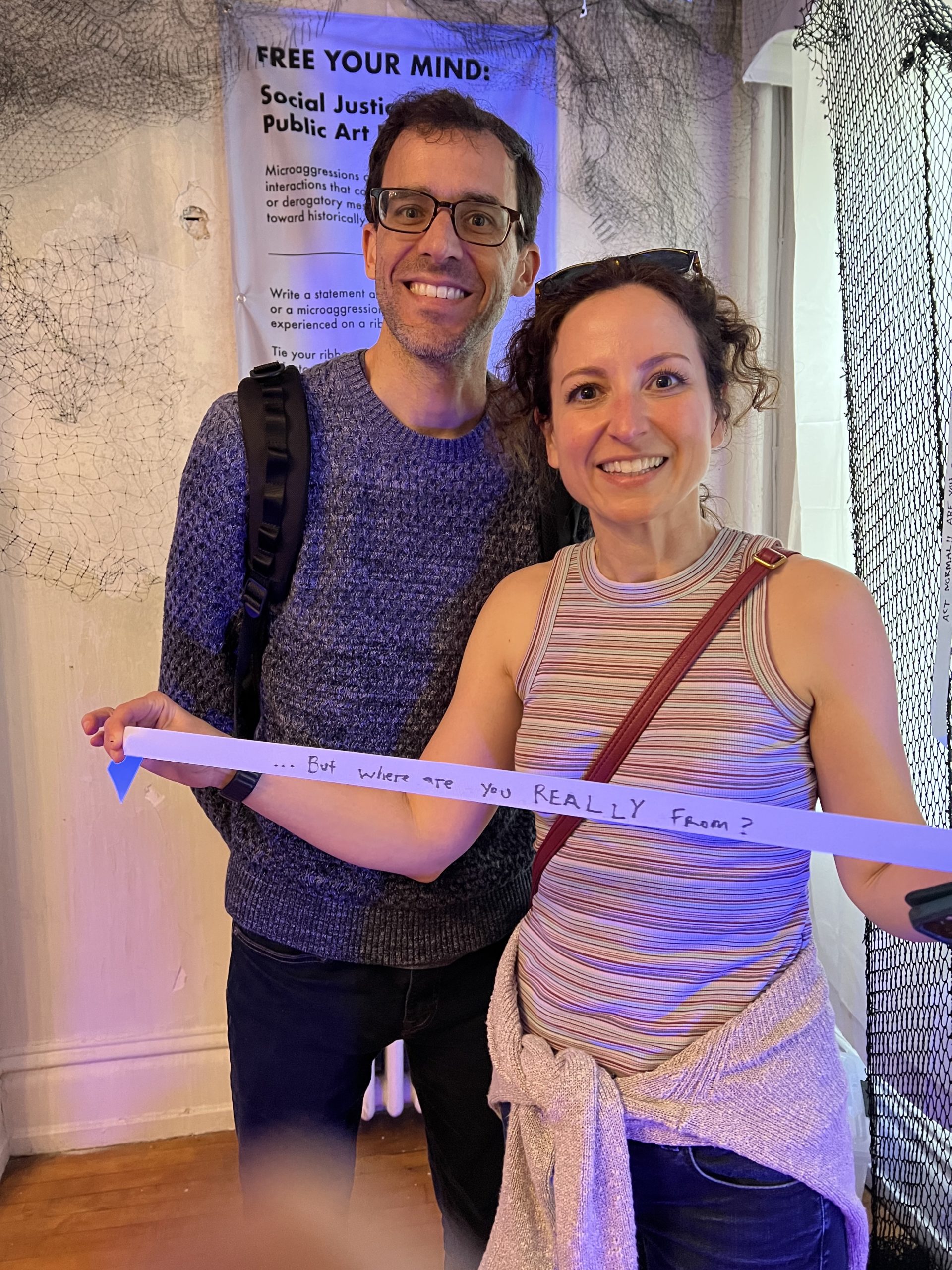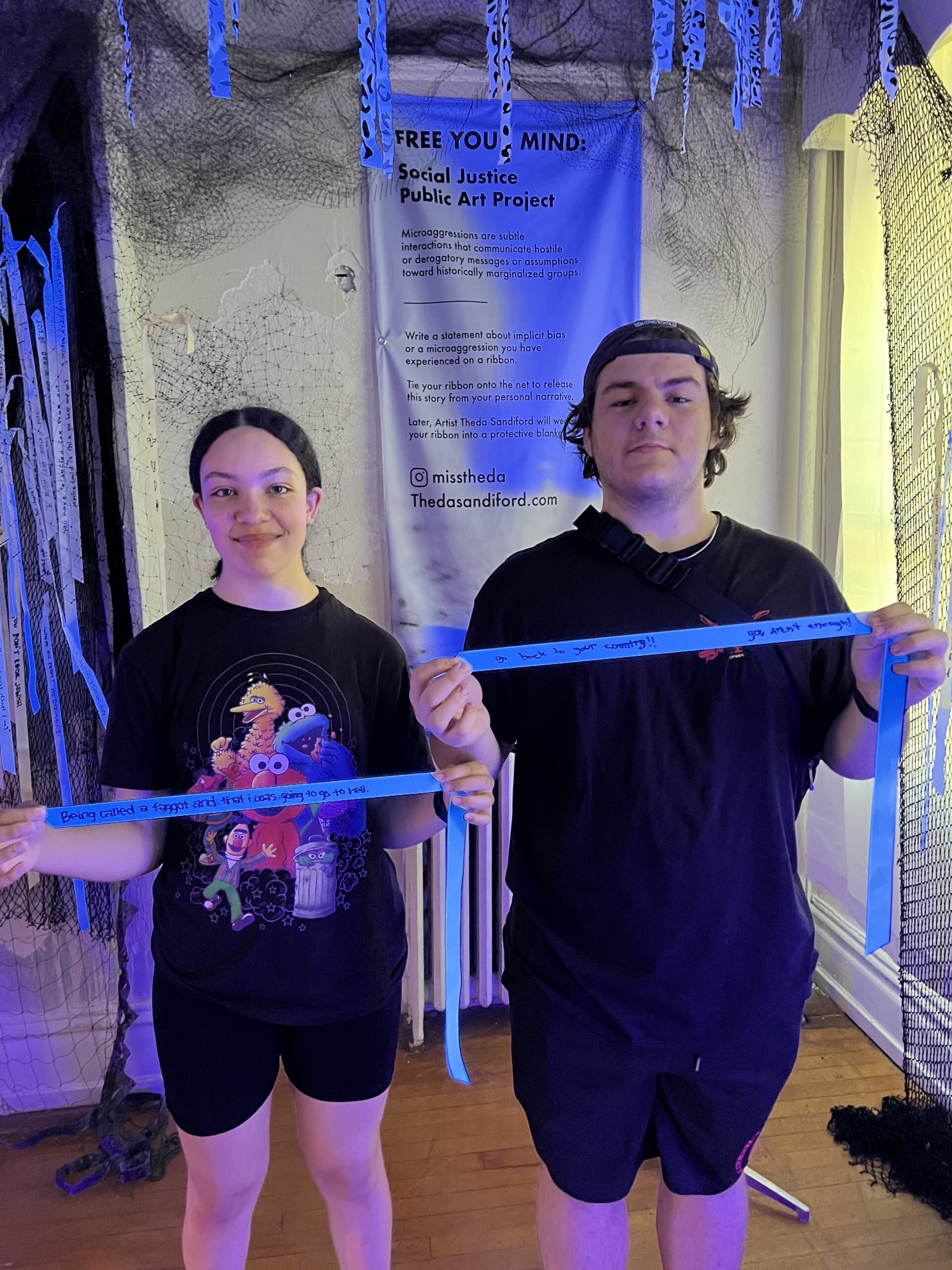 Theda is currently engaged in crafting a book cataloging the myriad story ribbons collected so far. Additionally, a dedicated interactive website, layered with census data, is in progress to track the types of microaggressions in various communities where the work is displayed. The ultimate objective is to bring Free Your Mind to all 50 states and develop an anti-implicit bias workbook.