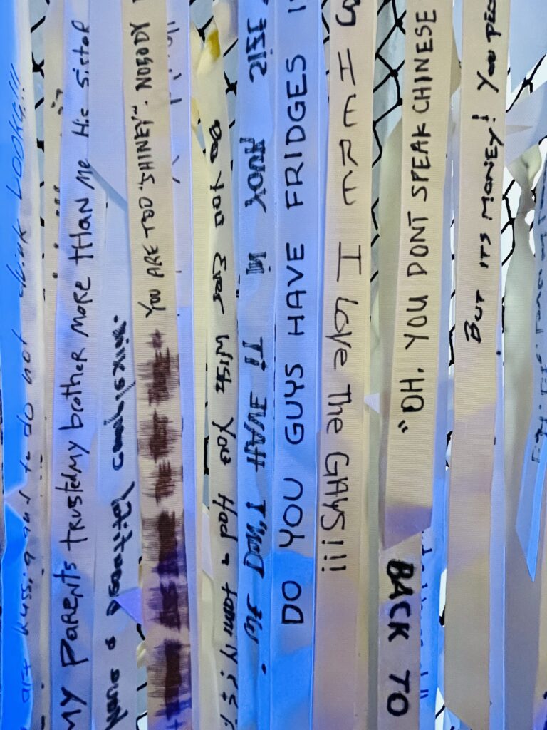 This project boldly unveils these interactions to offer a cathartic release. Participants are encouraged to share their experiences of microaggressions by inscribing them onto a ribbon, which is then tied to a net, symbolizing the liberation of these stories from their personal narratives. Each ribbon becomes a tangible “story ribbon.”